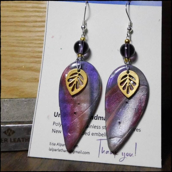 Each earring is approximately 1" x 2.5”, excluding earing wires.