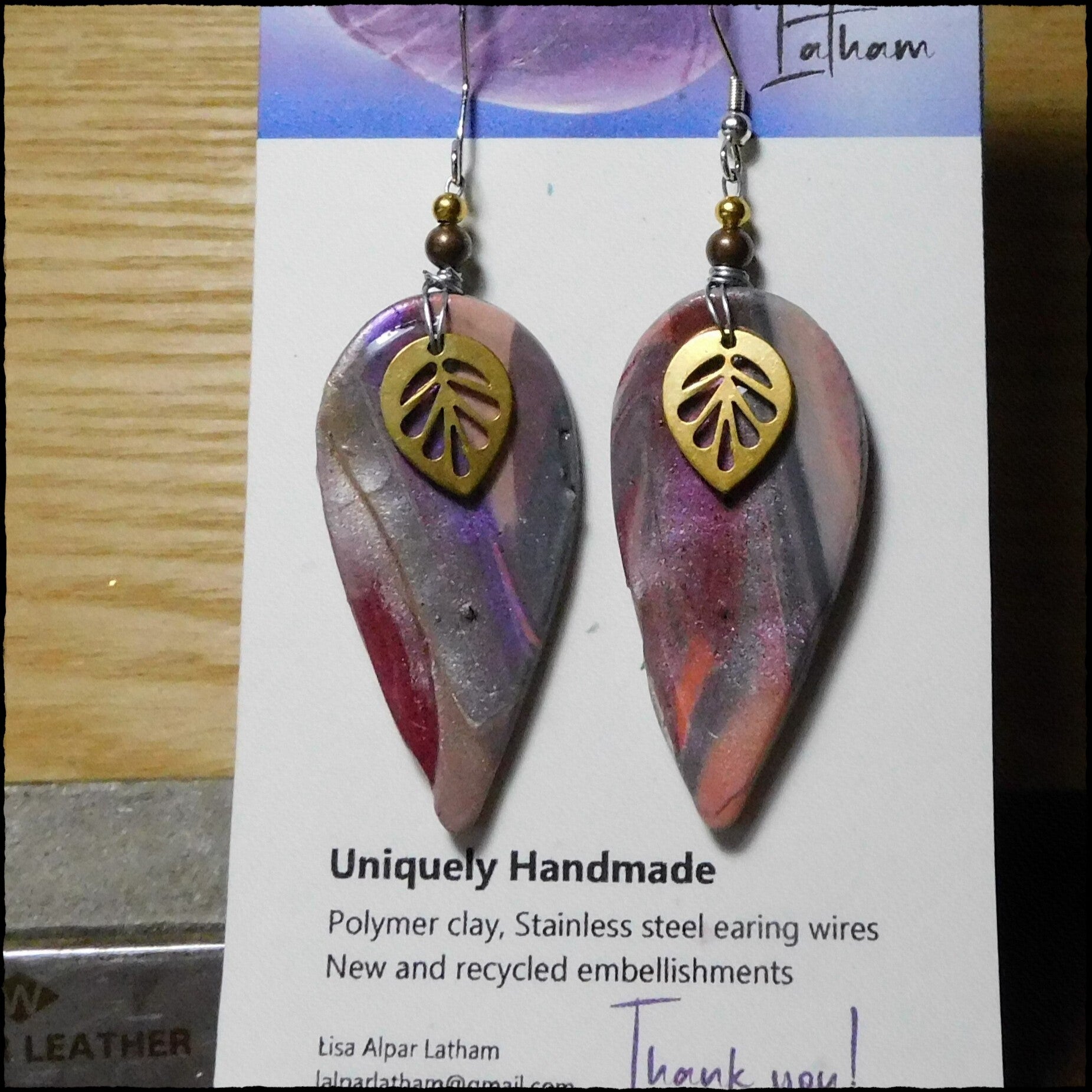 Each earring is approximately 1" x 2.5”, excluding earing wires.