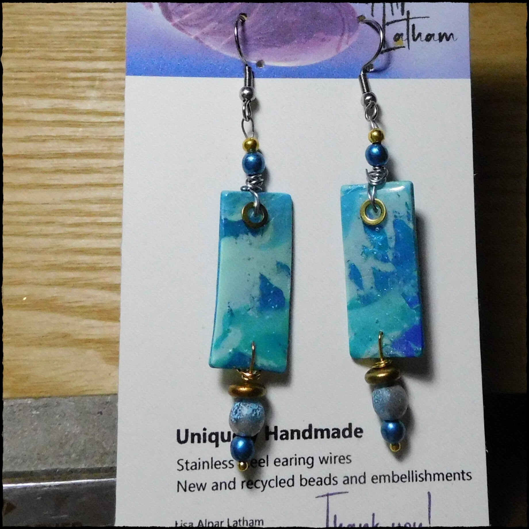Each earring is approximately .5" x 2”, excluding earing wires.