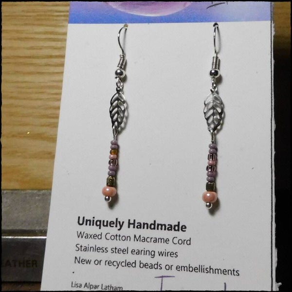 New and recycled beads, embellishments, findings, charms or whatever I could find. Stainless steel earring wires