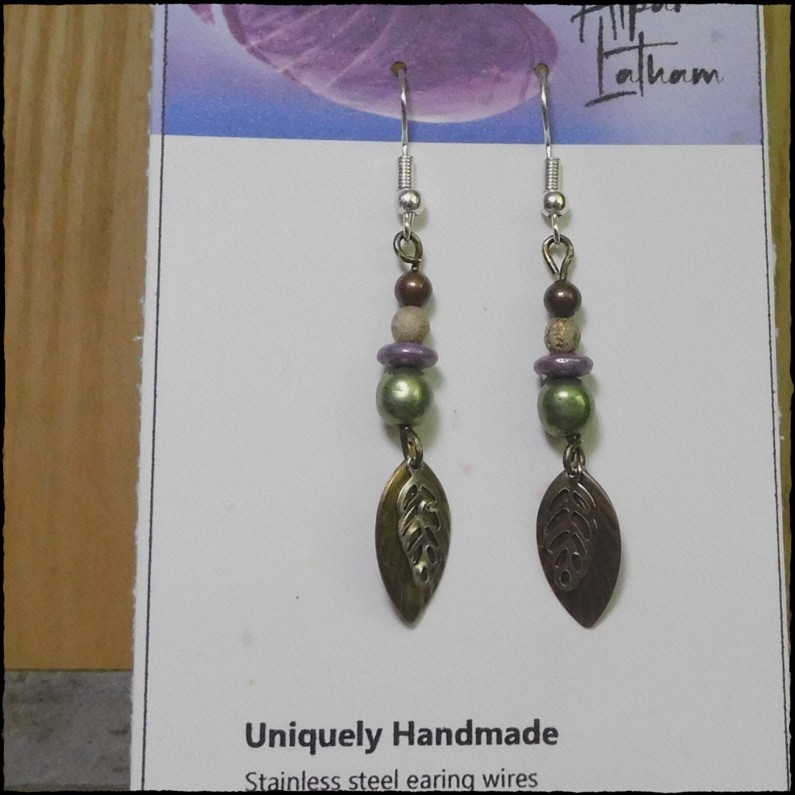 New and recycled beads, embellishments, findings, charms or whatever I could find. Stainless steel earring wires