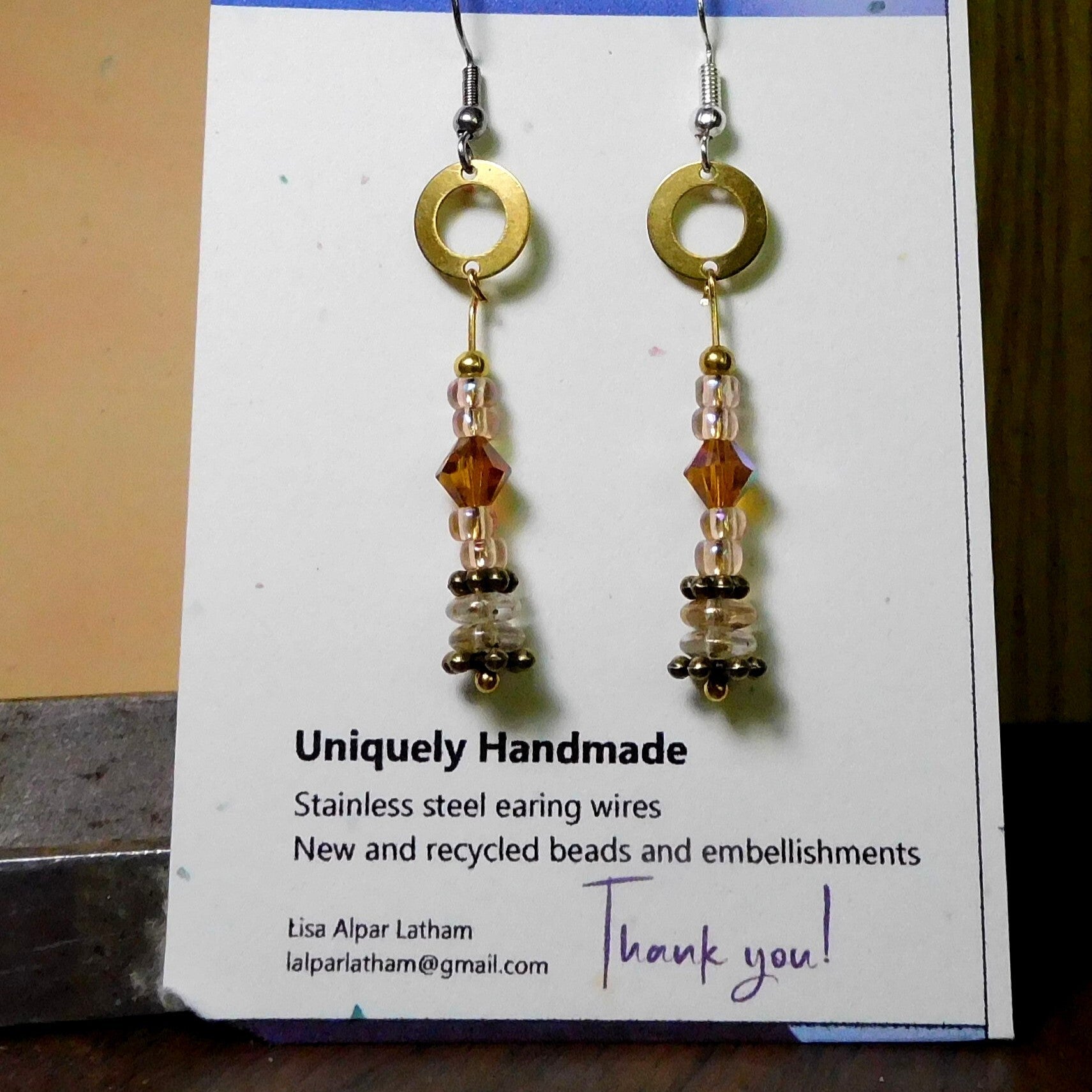 New and recycled beads, embellishments, findings, charms or whatever I could find. Stainless steel earring wires