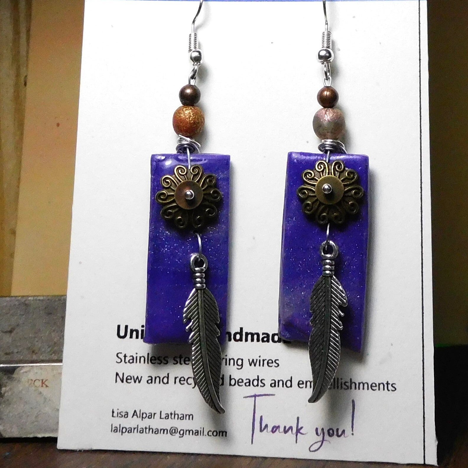 Each earring is approximately .5" x 2”, excluding earing wires.