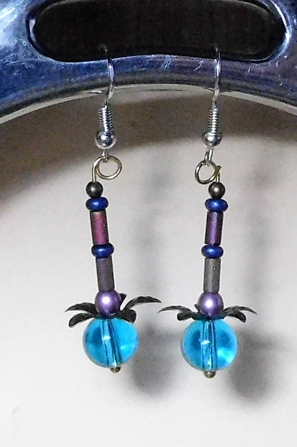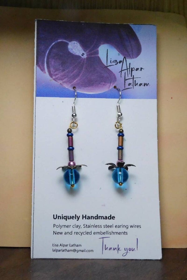 New and recycled beads, embellishments, findings, charms or whatever I could find. Stainless steel earring wires