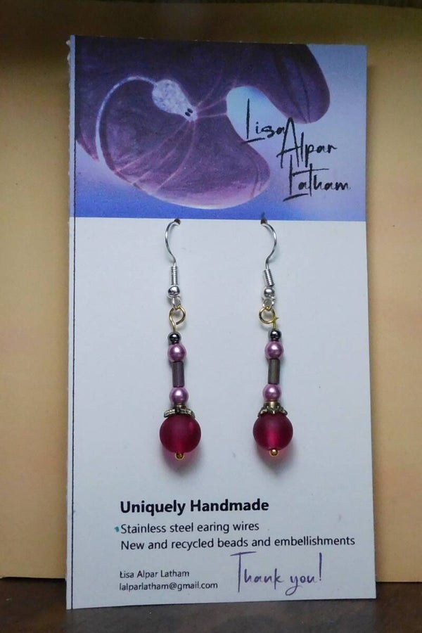 New and recycled beads, embellishments, findings, charms or whatever I could find. Stainless steel earring wires