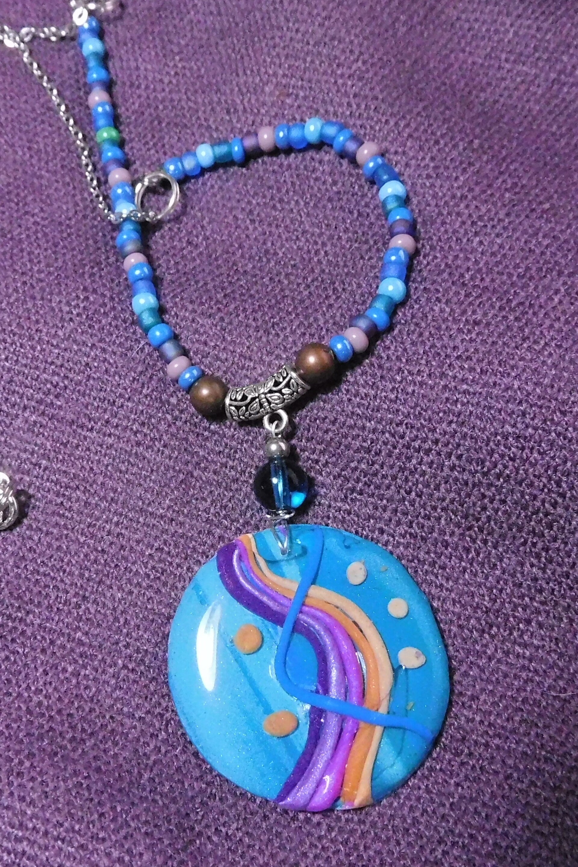 Unique, one-of-a-kind handmade polymer clay pendant.